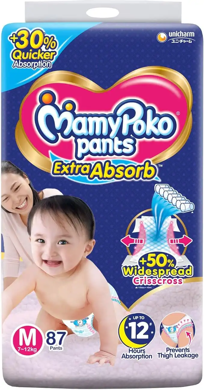 MamyPoko Pants for Babies, Extra Absorb M87, Size M, Pack of 87, 7-12 Kg — Price History & Tracker | DeserTracker