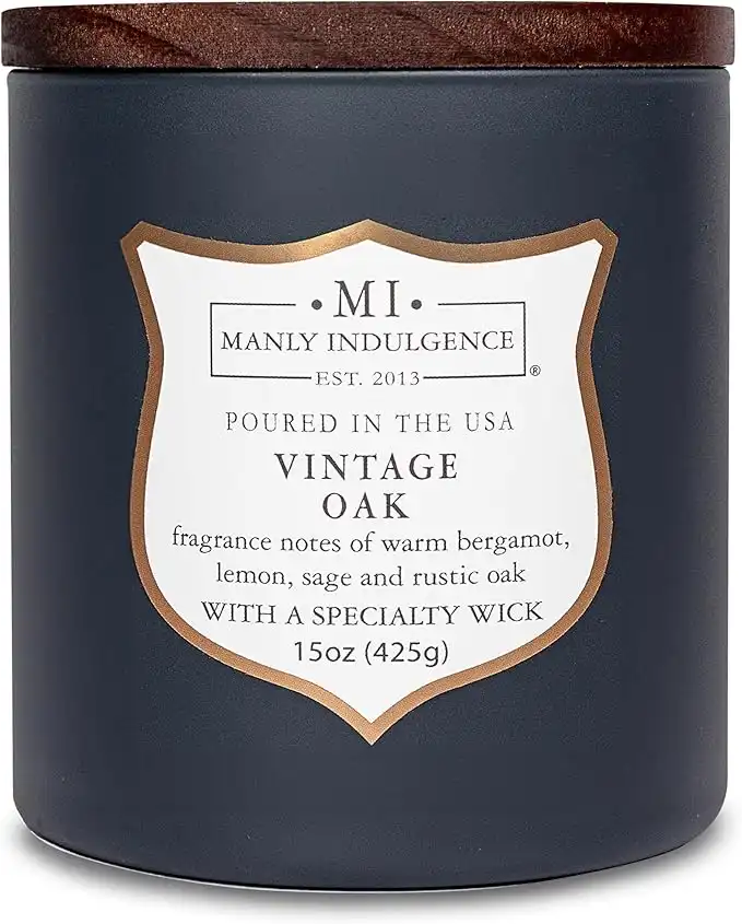 amazon.aeManly Indulgence Vintage Oak Scented Jar Candle, Wood Wick, Premium Soy Blend White Wax, 60 hr Burn, Matte Dark Gray Jar Candle for Home and Men, 15 oz - USA Poured