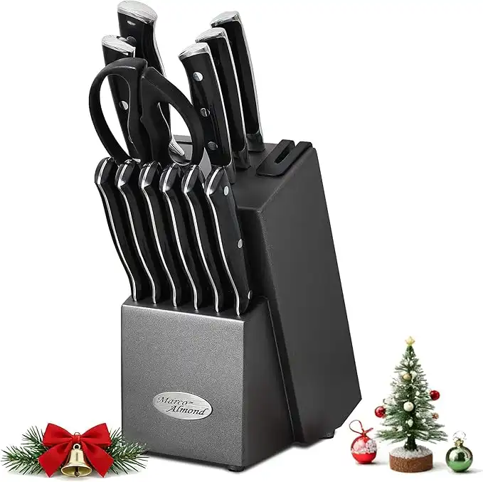 Marco Almond® Kitchen Knife Set with Block KYA31,14 Pieces Japanese Stainless Steel Cutlery Knives Block Set for Kitchen with Built-in Sharpener — Price History & Tracker | DeserTracker