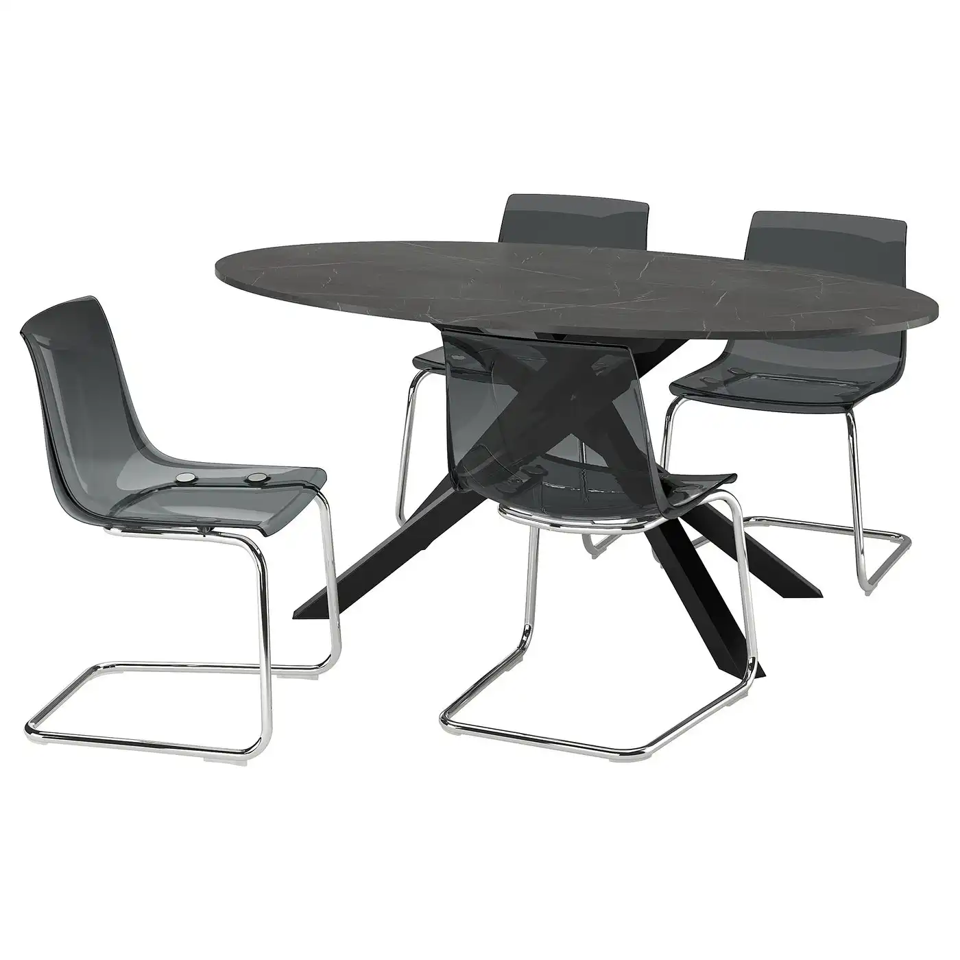 MARIEDAMM / TOBIAS Table and 4 chairs - black marble effect/grey chrome-plated 180x100 cm