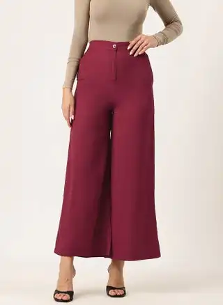 Maroon High-Rise Parallel Trousers for Women