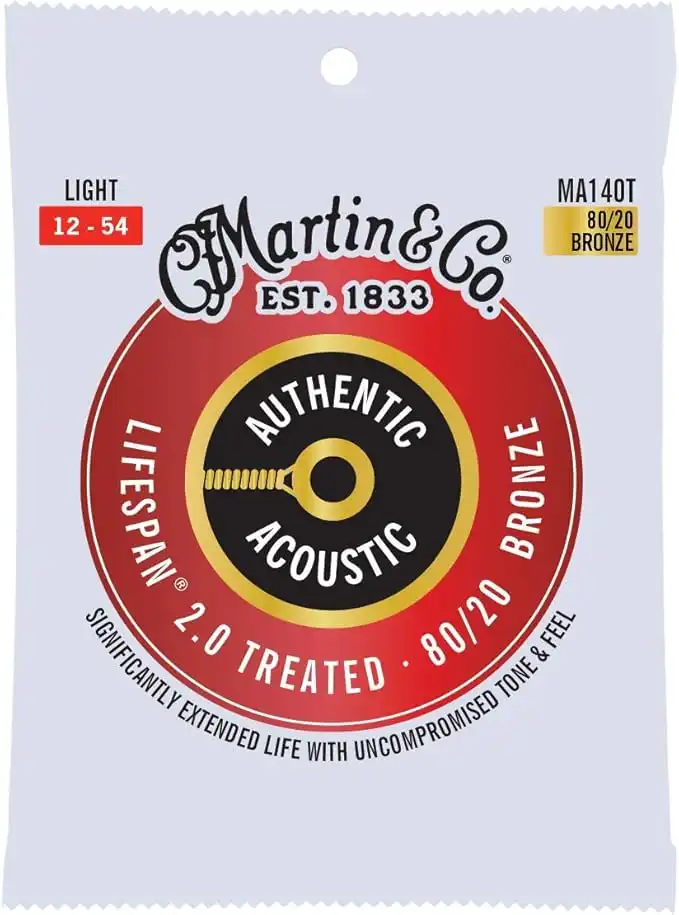 Martin Guitar Authentic Acoustic Lifespan 2.0 MA140T, 80/20 Bronze, Treated Light-Gauge Acoustic Strings