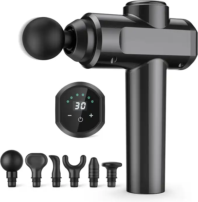 amazon.aeMassage Gun, Deep Tissue Massager, 30 Speeds Handheld Muscle Massage Gun, Portable Percussion Massager with 6 Heads, Powerful Muscle Gun Rechargeable Cordless for Home Office Gym (Black) (Black)