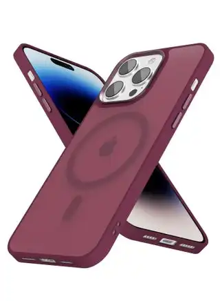 Matte Magnetic case for iPhone 13 Pro , High Grade Drop Protection with Shockproof Strip, Translucent Matte Back Phone Case (Deep Red)