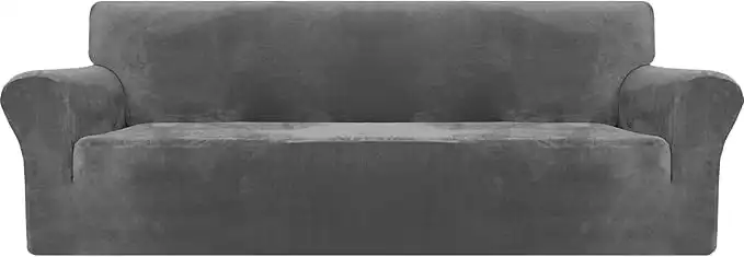 MAXIJIN Thick Velvet Extra Large Sofa Covers 4 Seater Super Stretch Non Slip Oversized Couch Cover for Dogs Cat Pet 1-Piece XL Sofa Slipcover Elastic Furniture Protector (4 Seater, Grey)