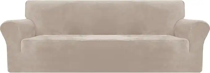 MAXIJIN Thick Velvet Sofa Covers 3 Seater Super Stretch Couch Cover for Dogs Cat Pet Friendly 1-Piece Elastic Furniture Protector Plush Sofa Slipcovers (3 Seater, Khaki)