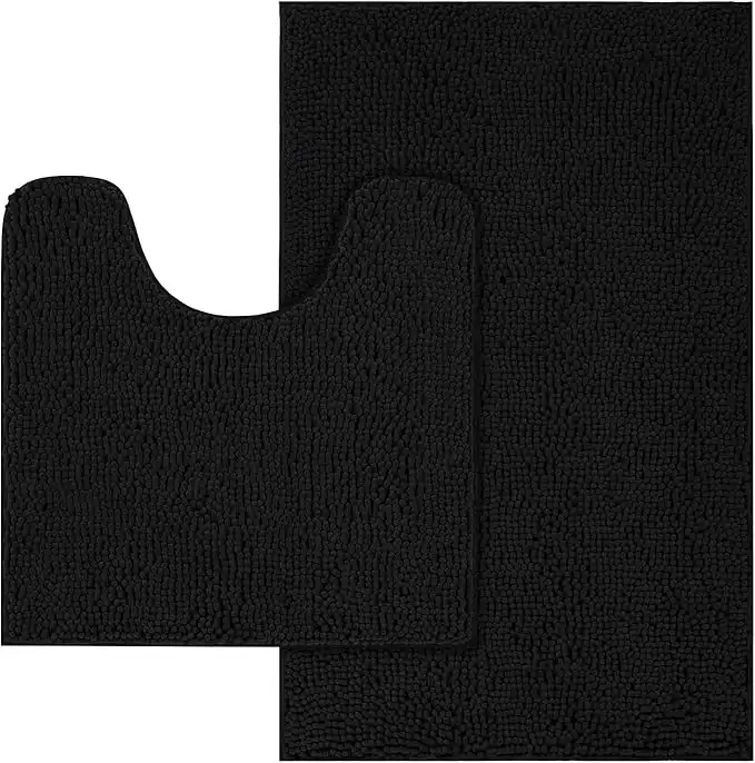 MAYSHINE Bathroom Rug Set | Soft Plush Chenille Bath Mats with PVC Non-Slip Backing, Absorbent Washable Quick Dry Area Rug Sets for Bathroom Floor | 32"x20" and 20"x20" Set | Black — Price History & Tracker | DeserTracker