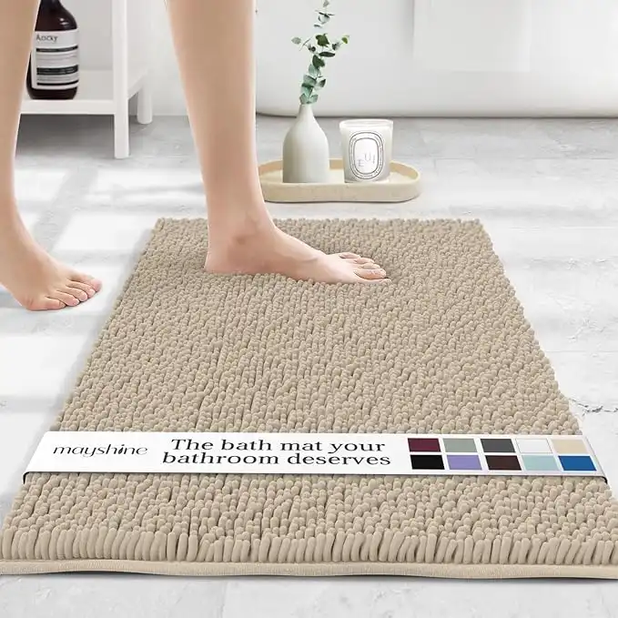 MAYSHINE Plush Shaggy Chenille Bath Mat | Extra Soft, Super Absorbent, Non-Slip Bathroom Rug | Fluffy Microfiber, Area Rug Sets for Bathroom Floor, Kitchen, Living Room | 47"x27" | Beige — Price History & Tracker | DeserTracker