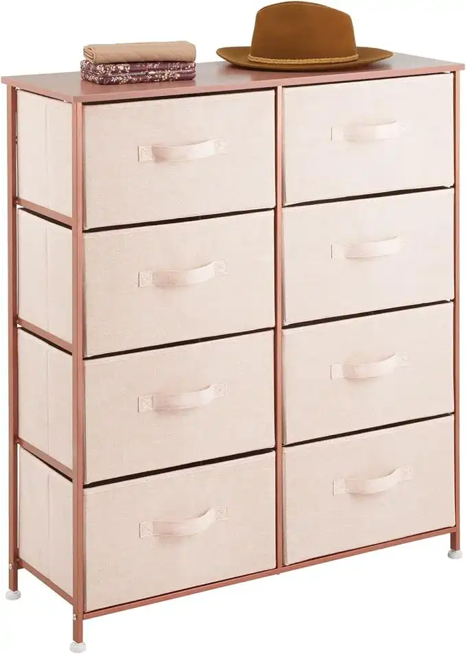 amazon.aemDesign 38.31" High Steel Frame/Wood Top Storage Dresser Furniture Unit, 8 Removable Fabric Drawers - Large Bureau Organizer for Bedroom, Living Room, or Closet - Lido Collection, Light Pink/Rose Gold