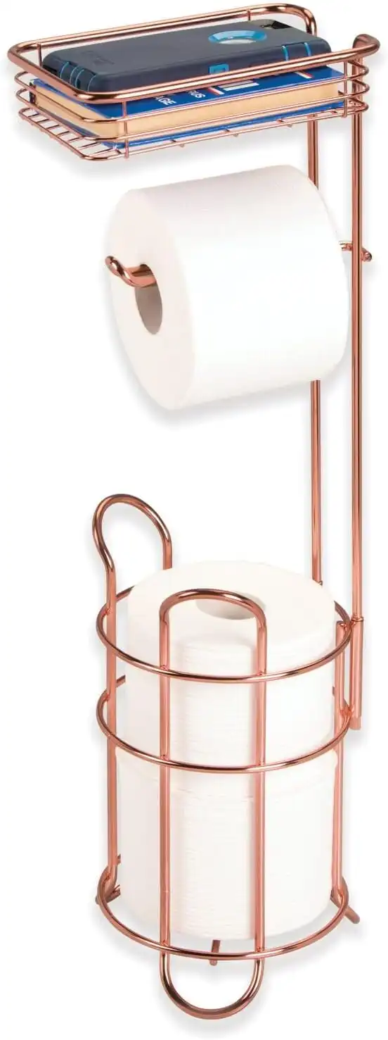 amazon.aemDesign Freestanding Metal Wire Toilet Paper Roll Holder Stand and Dispenser with Storage Shelf for Cell, Mobile Phone - Bathroom Storage Organisation - Holds 3 Mega Rolls - Rose Gold
