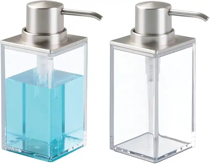 mDesign Set of 2 Bathroom Soap Pump Set - Soap Dispenser Pump for Bathroom Counter Top - Handwash Dispenser for the Bathroom - Clear/Matte Silver — Price History & Tracker | DeserTracker