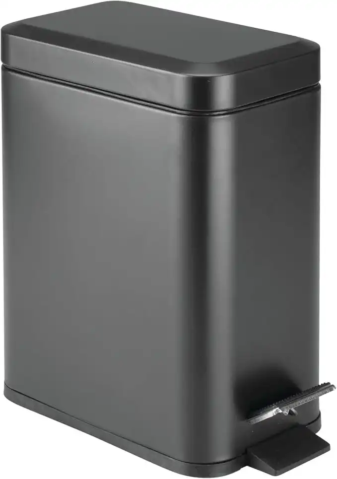 mDesign Small Modern 1.3 Gallon Rectangle Metal Lidded Step Trash Can, Compact Garbage Bin With Removable Liner Bucket And Handle For Bathroom, Kitchen, Craft Room, Office, Garage - Black