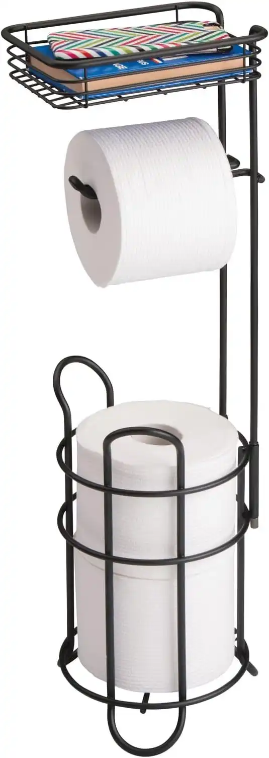 amazon.aemDesign Steel Metal Free Standing Toilet Paper Holder Stand and Dispenser with Storage Shelf - Toilet Tissue for Bathrooms, Washroom - Holds 2 Extra Mega Rolls - Concerto Collection - Matte Black