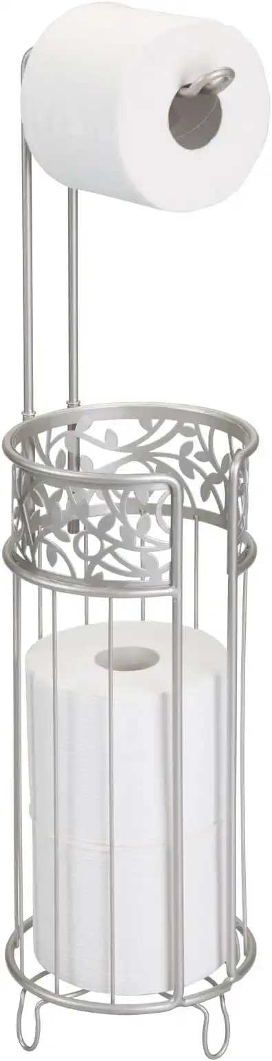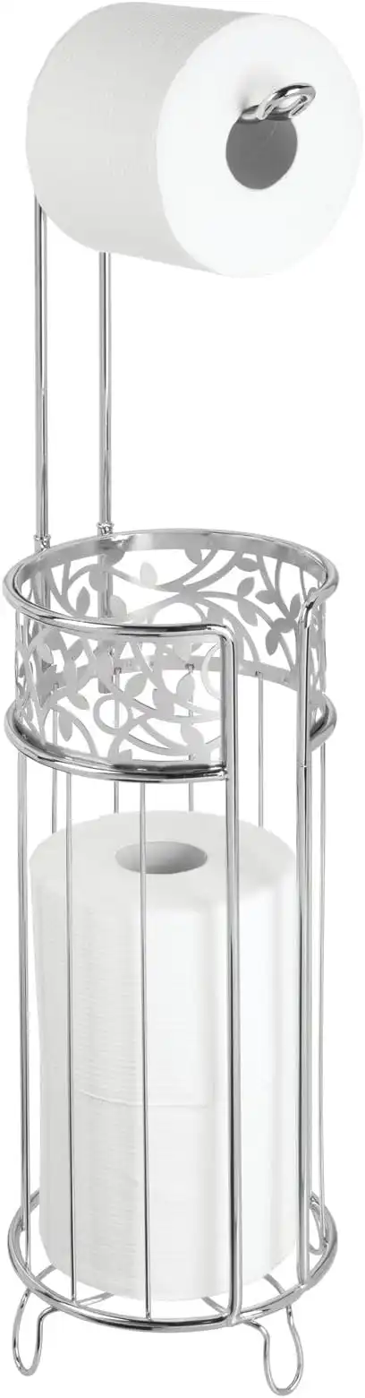 mDesign Steel Toilet Paper Roll Stand Storage Organizer and Dispenser for Bathroom/Home Organization - Holds 3 Rolls of Toilet Tissue - Arbor Collection - Chrome