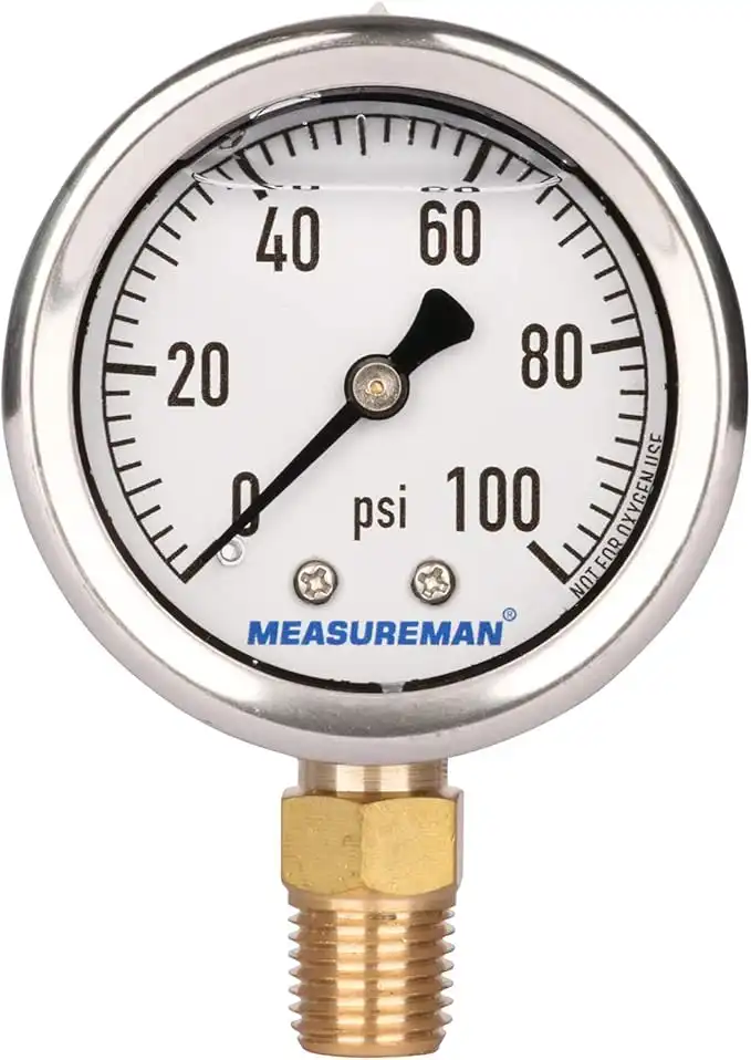 MEASUREMAN 2" Dial Size, Glycerin Filled Plumbing Pressure Gauge, 0-100psi, Black Steel Case, 1/4"NPT Lower Mount — Price History & Tracker | DeserTracker