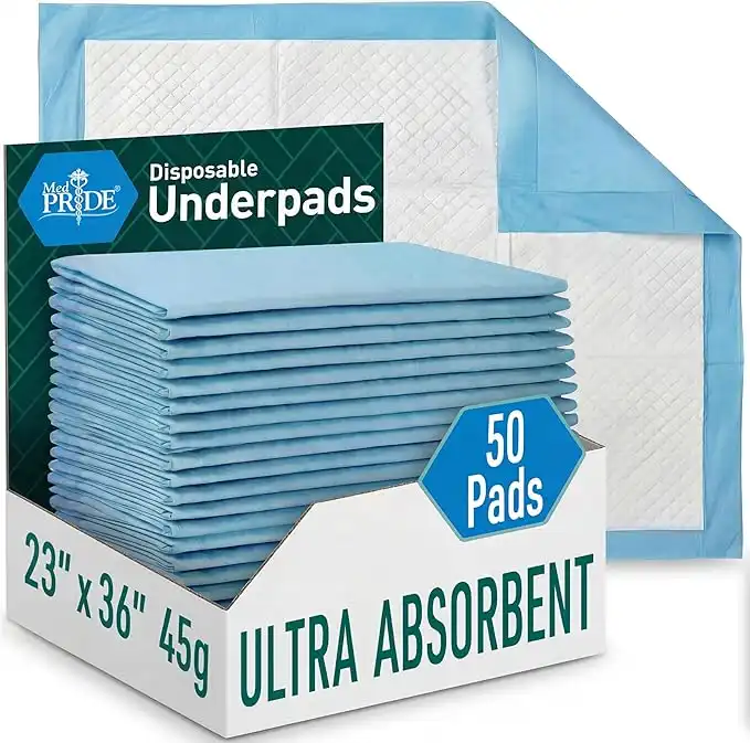 MED PRIDE Disposable Underpads 23'' X 36'' (50-Count) Incontinence Pads, Chux, Bed Covers, Puppy Training | Thick, Super Absorbent Protection for Kids, Adults, Elderly | Liquid, Urine, Accidents