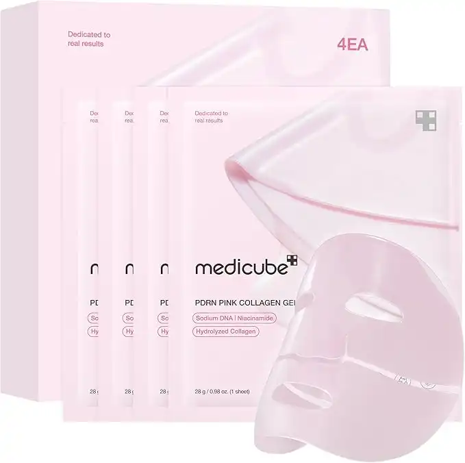 medicube Salmon DNA PDRN pink collagen jelly gel mask | overnight face mask for glass glow skin- elasticity, hydrating, firming and moisturizing | korean skincare, 28g, 4ea