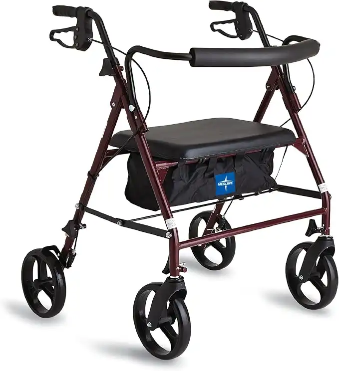 Medline Heavy Duty Rollator Walker with Seat, Bariatric Rolling Walker Supports up to 500 lbs, Large 8-inch Wheels, Burgundy — Price History & Tracker | DeserTracker
