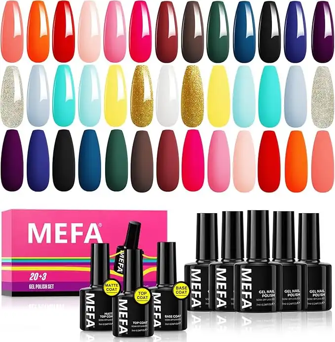 MEFA 23 Pcs Gel Nail Polish Set with Nice Box, Soak Off Nail Gel Collection with Glossy and Matte Top Coat Base Coat Manicure Nail Art Salon — Price History & Tracker | DeserTracker