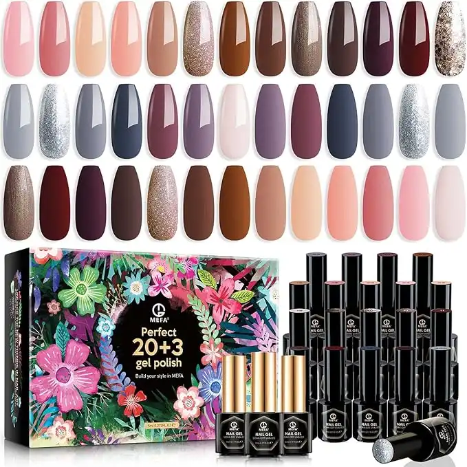 amazon.aeMEFA Gel Nail Polish Kit, 20 Colors Nude Brown Glitter Gel Polish Set Neutral Nude Pink Nail Polish Gel Soak Off Gel Nail Starter Kit with Glossy & Matte Top Base Coat Manicure Nail Art Salon Gifts
