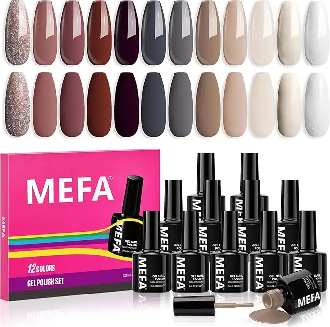 amazon.aeMEFA Gel Nail Polish Set - Fall Gel Nail Polish 12 Colors Nude-Dark Brown Skin Tones Burgundy Gel Polish with White Brown Pearl Glitter Salon Nail Art Gift Set for Girls/Women Manicure Starter Kit