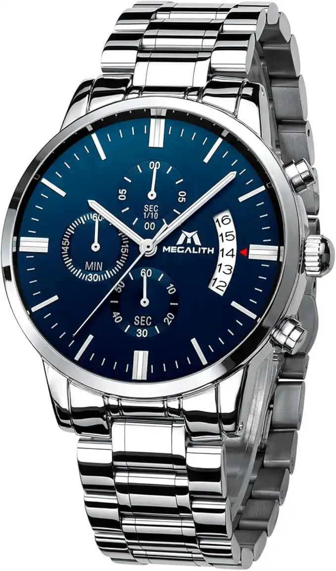 amazon.comMEGALITH Mens Watch Analog Silver: Stainless Steel Waterproof Chronograph Fashion Casual Elegant Date Mens Wrist Watch