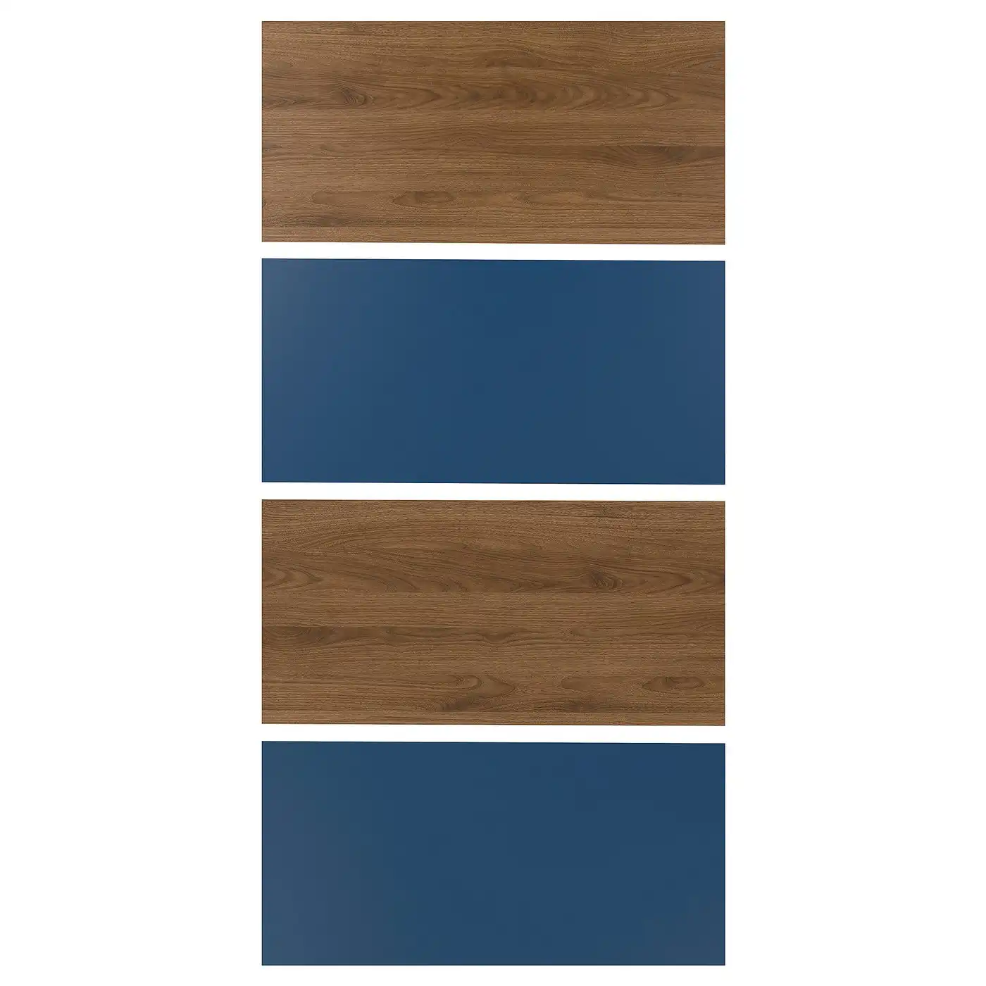 MEHAMN 4 panels for sliding door frame - walnut effect/blue 100x201 cm