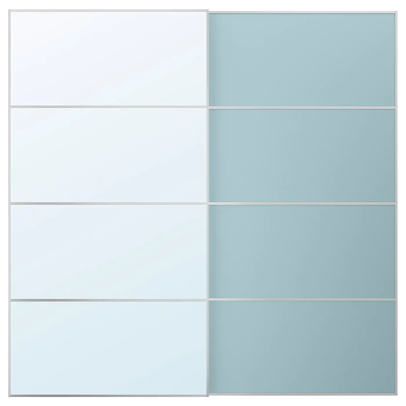 MEHAMN/AULI Pair of sliding doors - aluminium double sided/light blue mirror glass 200x201 cm