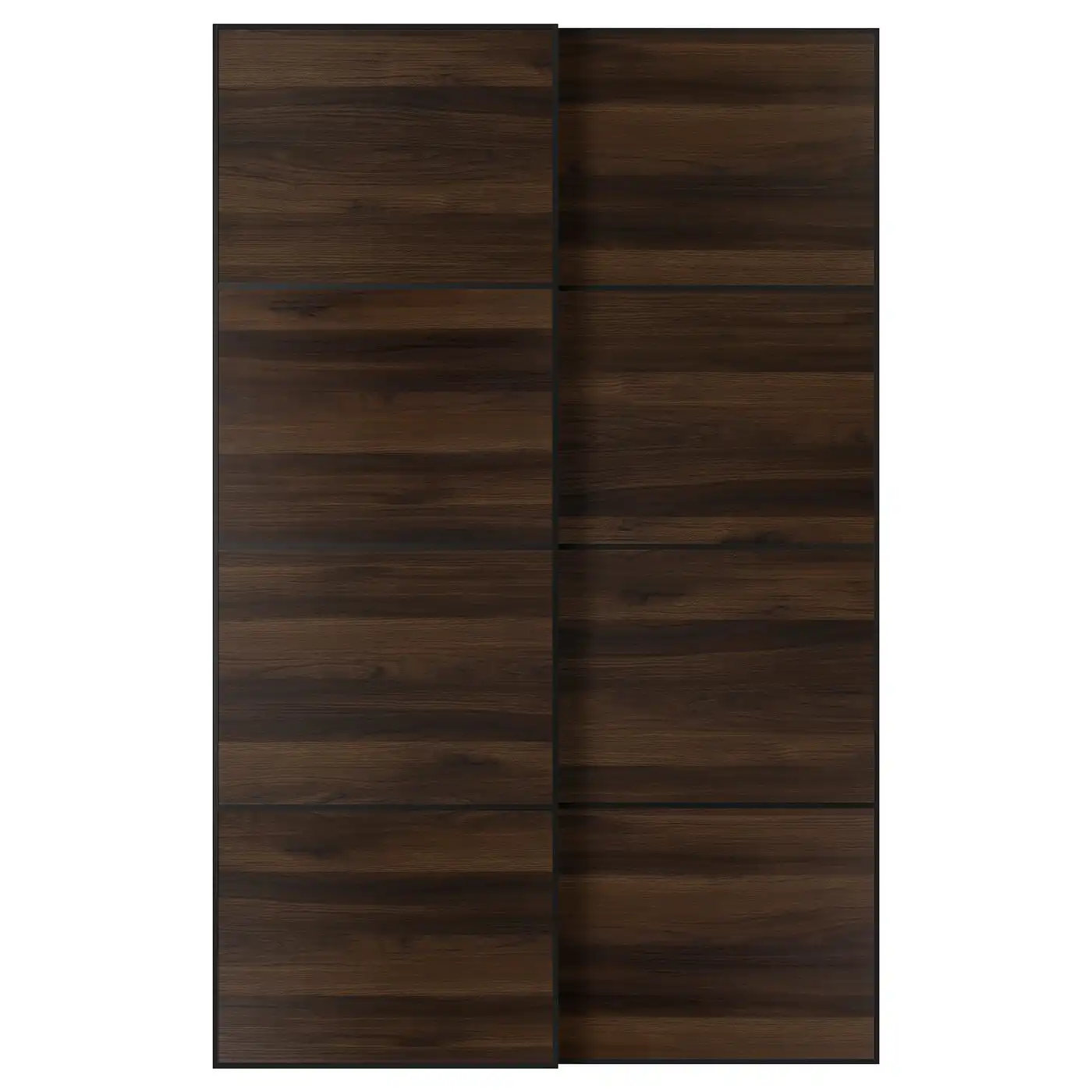 MEHAMN Pair of sliding doors - black/double sided walnut 150x236 cm