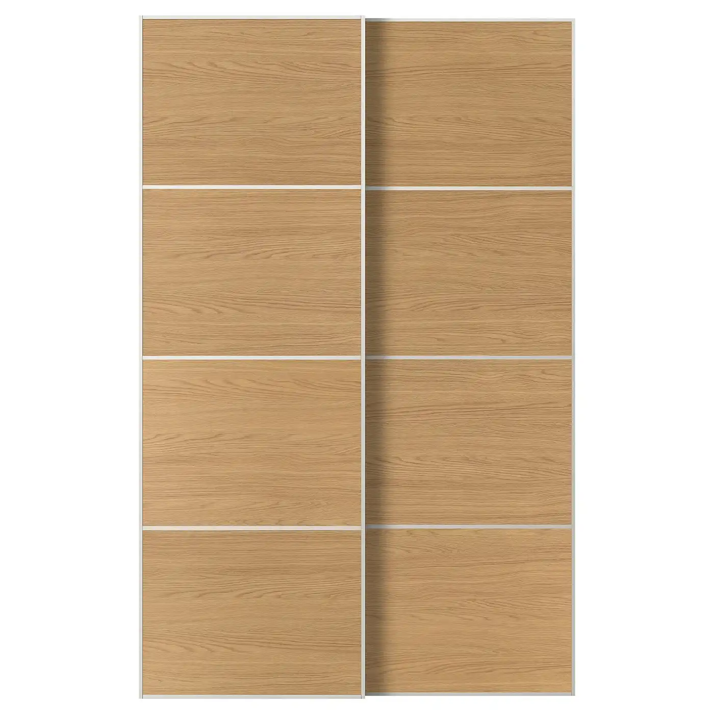 MEHAMN Pair of sliding doors - white/double sided oak effect 150x236 cm
