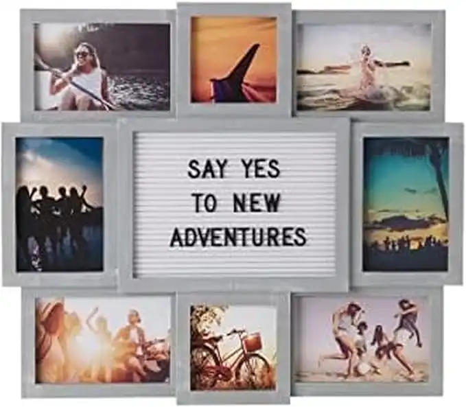 MELANNCO Letter Board with 8-Opening Photo Collage Melannco Customizable Letterboard , Distressed Grey , 19 x 17 inch - 8-Opening , 5230151