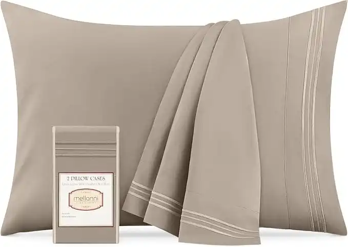 Mellanni King Size Pillow Cases Set of 2 - Iconic Collection Pillowcases - Hotel Luxury, Extra Soft, Cooling Pillow Covers - Envelope Closure - Wrinkle, Fade, Stain Resistant (2 PC King 20"x40", Tan) — Price History & Tracker | DeserTracker