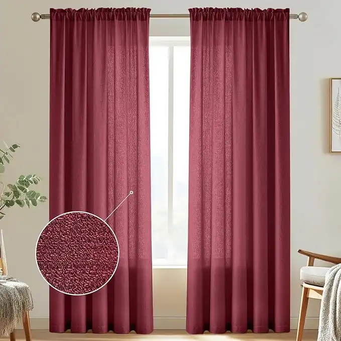 Melodieux Burgundy Semi Sheer Curtains 96 Inches Long for Living Room, Linen Look Bedroom Rod Pocket Voile Ds, 52 by 96 Inch (2 Panels) — Price History & Tracker | DeserTracker