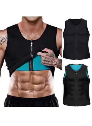 Men Hot Neoprene Waist Trainer Vest Workout Sauna Suit Smooth Zipper Tank Top Weight Loss Corset Body Shaper Gym Sweat Shirt