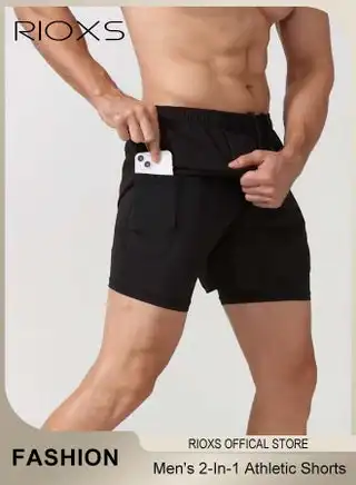 noon.comMen's 2-In-1 Athletic Running Shorts, Lightweight Sportwear Quick-Drying Shorts, Fitness Stretch Sports Shorts with Pocket, No Fading, No Deformation