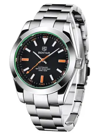 Men's Automatic Watch, Classic Casual Wrist Watch, Stainless Steel Strap, Imported Movement, 50M Waterproof, Premium Business Wristwatch, BY-5176M Silver Black — Price History & Tracker | DeserTracker