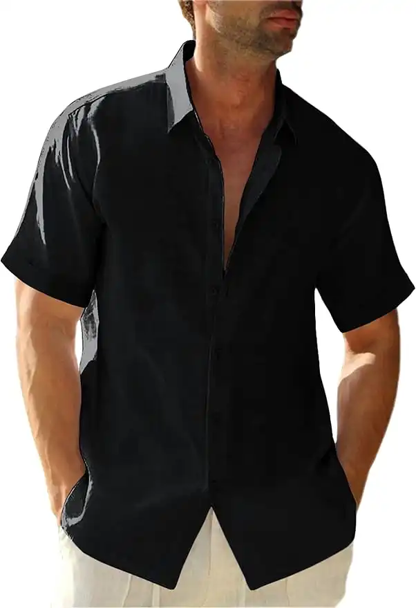 Men's Casual Button Down Short Sleeve Shirt Button Up Summer Beach Regular-fit Cotton Speard Collar Tops, Black, L — Price History & Tracker | DeserTracker