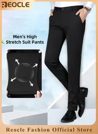 noon.comMen's Dress Pant Fashion Slim Fit Suit Pants Classic Fit Flat Front Straight Formal Pants Wrinkle Free Expandable Waist Suit Pants