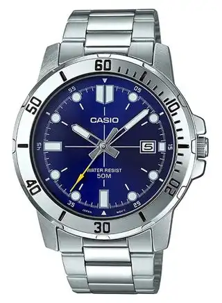 Men's Enticer Water Resistant Stainless Steel Analog Watch MTP-VD01D-2EVUDF - 45 mm - Silver — Price History & Tracker | DeserTracker