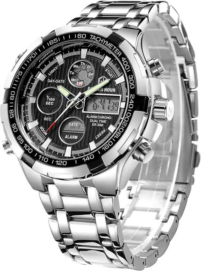 Men's Heavy Chronograph Stainless Steel Waterproof Watch with Date and Alarm Function Analogue Digital Display — Price History & Tracker | DeserTracker
