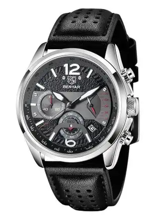 Men's Quartz Watches Genuine Leather Sports Wrist Watch for Men Waterproof,Silver Black