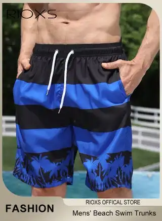 noon.comMen's Swim Trunks, Loose Fit Quick Dry Swim Shorts with Pockets and Elastic Waistband, Breathable Printed Drawstring Board Shorts with Striking Patterns, Fashionable Casual Bathing Shorts, Suitable for Swimming, Beach Surfing, Running, Ball Sports, Relaxing at Home, and Beyond, Black and Blue