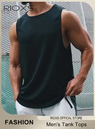 noon.comMen's Vest, Athletic Tank Tops for Men, Men's Fit Tank Top, Quick Dry Sleeveless Black Tops, Classic Round Neck Outdoor Vest, Sleeveless Gym Shirt Men, Men Tank Tops Undershirt For Daily/ Training Activities