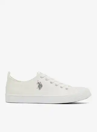 Men's White Low-Top Canvas Sneakers - Iconic Branding for a Clean Look Shoes