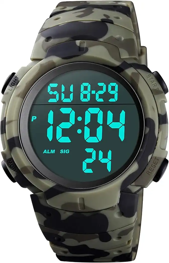 Mens Digital Sports Watch LED Screen Large Face Military Watches for Men Waterproof Casual Luminous Stopwatch Alarm Simple Army Watch — Price History & Tracker | DeserTracker