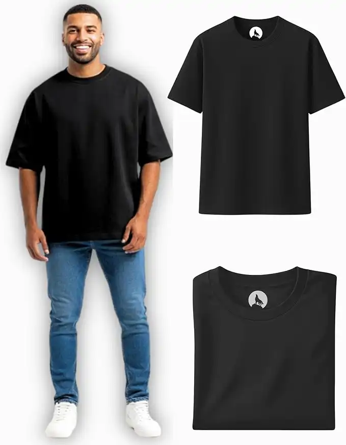 Men’s Oversized T-Shirt 100% Egyptian Cotton | Heavyweight 250 GSM | Black & White Colors | Single or Pack of 2 | Baggy Streetwear Fit with Drop Shoulder | Crew Neck | Made in Egypt
