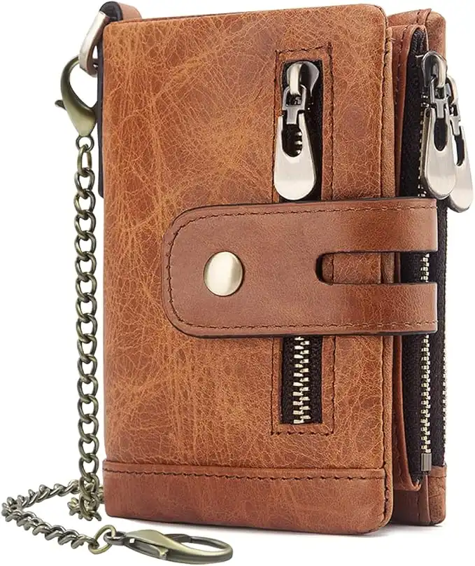 amazon.aeMens Wallet RFID Blocking Men's Genuine Leather Wallet and Zipper Coin Pocket Bifold Purse with Chain 16 Credit Card Holder Genuine Leather Gents Wallets Slim Purse (Light Brown)