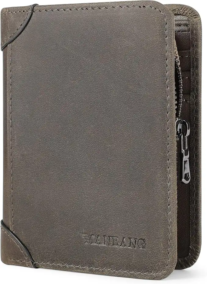 Mens Wallet Zipper Genuine Leather RFID Card Holders Cowhide Zip Coin Pocket Bifold wallets for men Brown(anti-theft brush) — Price History & Tracker | DeserTracker