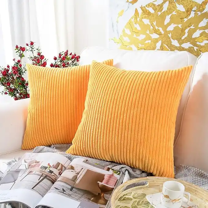 MERNETTE Pack of 2, Corduroy Soft Decorative Square Throw Pillow Cover Cushion Covers Pillowcase, Home Decor Decorations for Sofa Couch Bed Chair 18x18 Inch/45x45 cm (Striped Turmeric) — Price History & Tracker | DeserTracker
