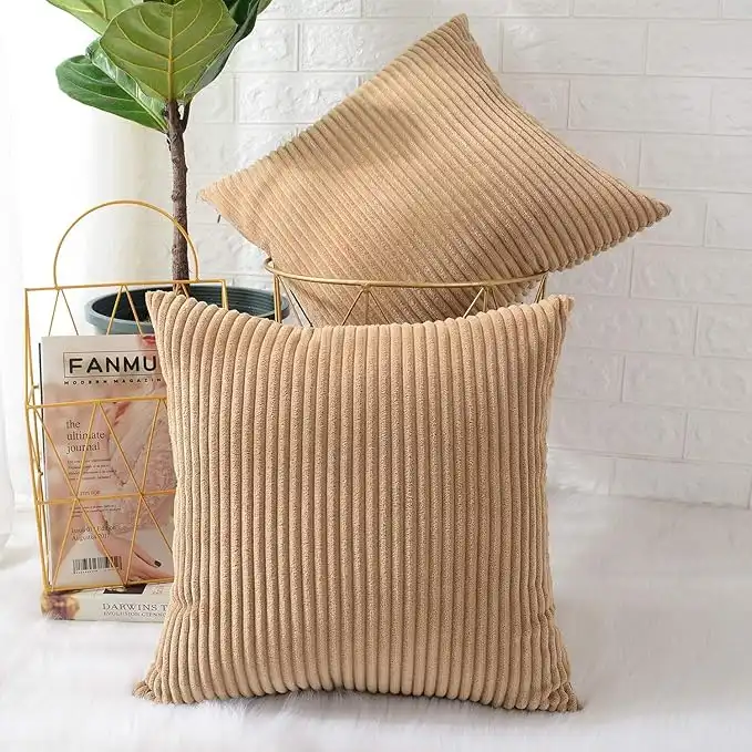 MERNETTE Pack of 2, Corduroy Soft Decorative Square Throw Pillow Cover Cushion Covers Pillowcase, Home Decor Decorations for Sofa Couch Bed Chair 26x26 Inch/65x65 cm (Striped Light Brown) — Price History & Tracker | DeserTracker